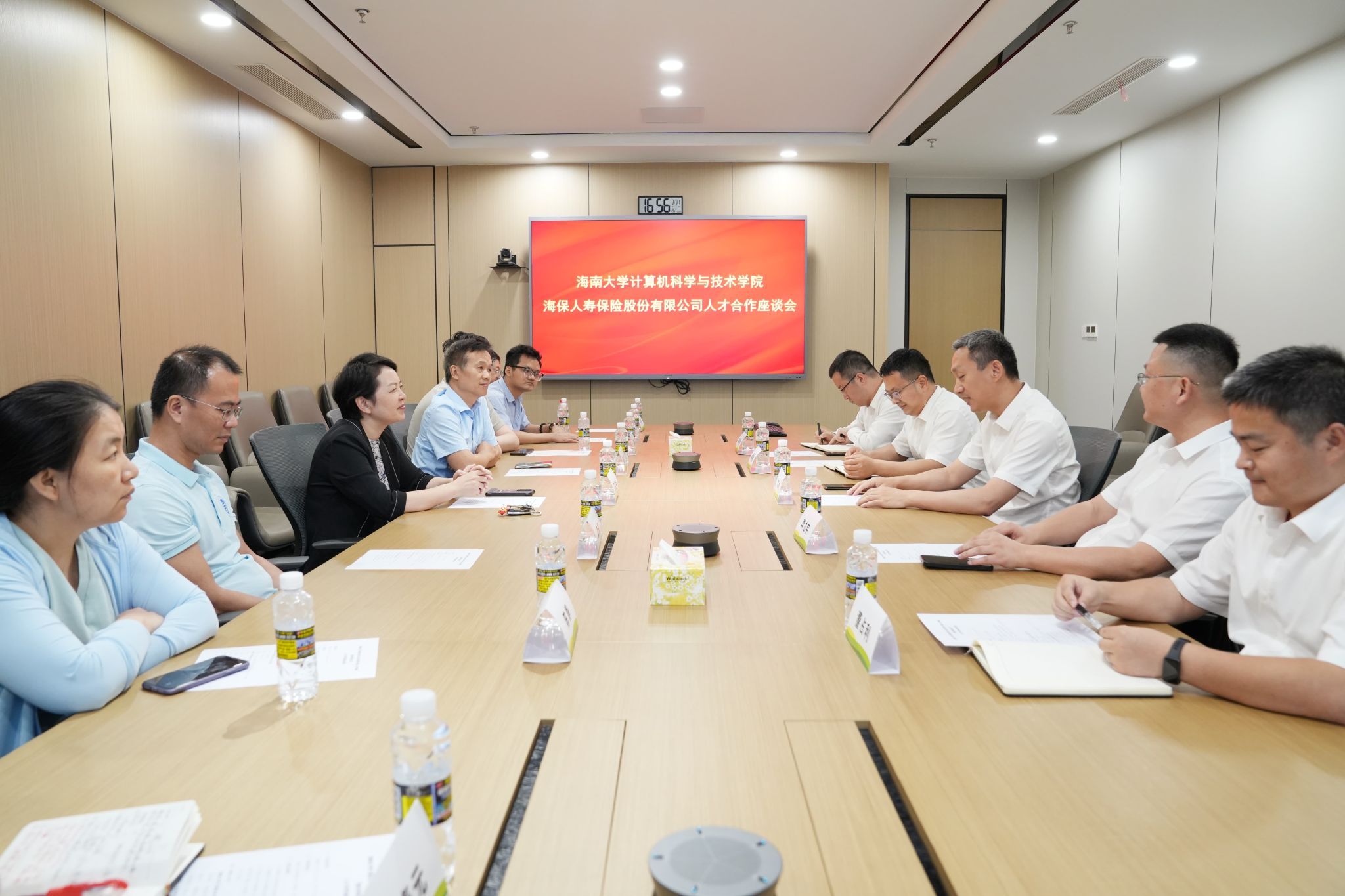 为贯彻落实教育部《关于开展“优企引才”定向访企拓岗促就业专项行动的通知》要求,进一步拓展市场化、社会化就业渠道,开发更多契合毕业生专业特长的就业岗位,促进校企人才精准对接,2026年3月31日,海南大学计算机科学与技术学院与海保人寿保险股份有限公司于海保人寿海南分公司第一会议室举行人才合作座谈。双方围绕保险科技领域人才培养、校企协同等核心议题深入交换意见,共同谋划产教融合新发展。海南大学计算机科学与技术学院党委书记王红英、副院长程杰仁,以及教师代表张春元、周辉、齐琦、于熙洵、陈静、林道发与27名毕业生代表参会;海保人寿人力资源部总经理陈勇、信息技术部总经理李立宇等企业代表出席座谈。会议由陈勇主持并致欢迎辞。